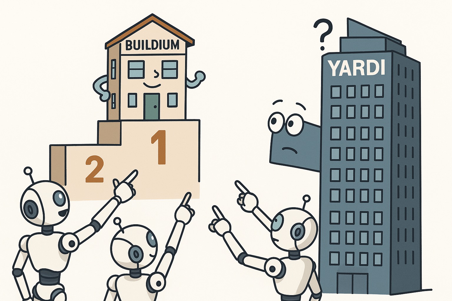 We analyzed 22 property management software brands across ChatGPT, Claude, Gemini & Perplexity. Buildium scored 89%. Yardi — the $22B industry's dominant player — scored just 11%. Here's the full ranking with 7 interactive charts.